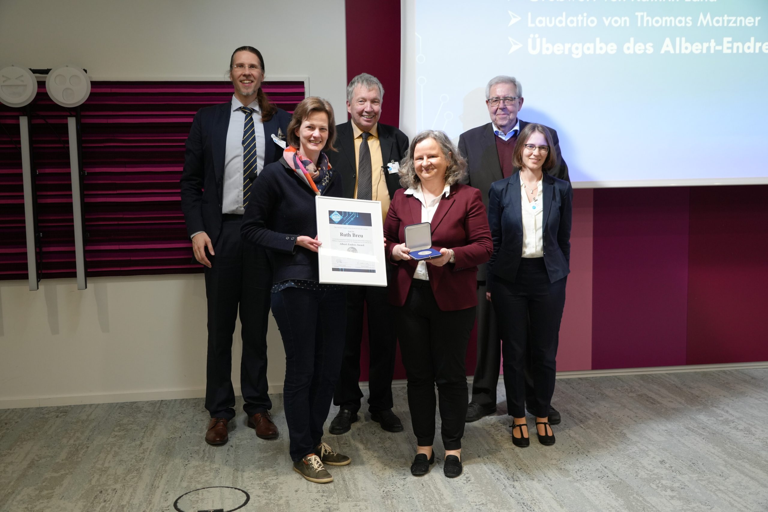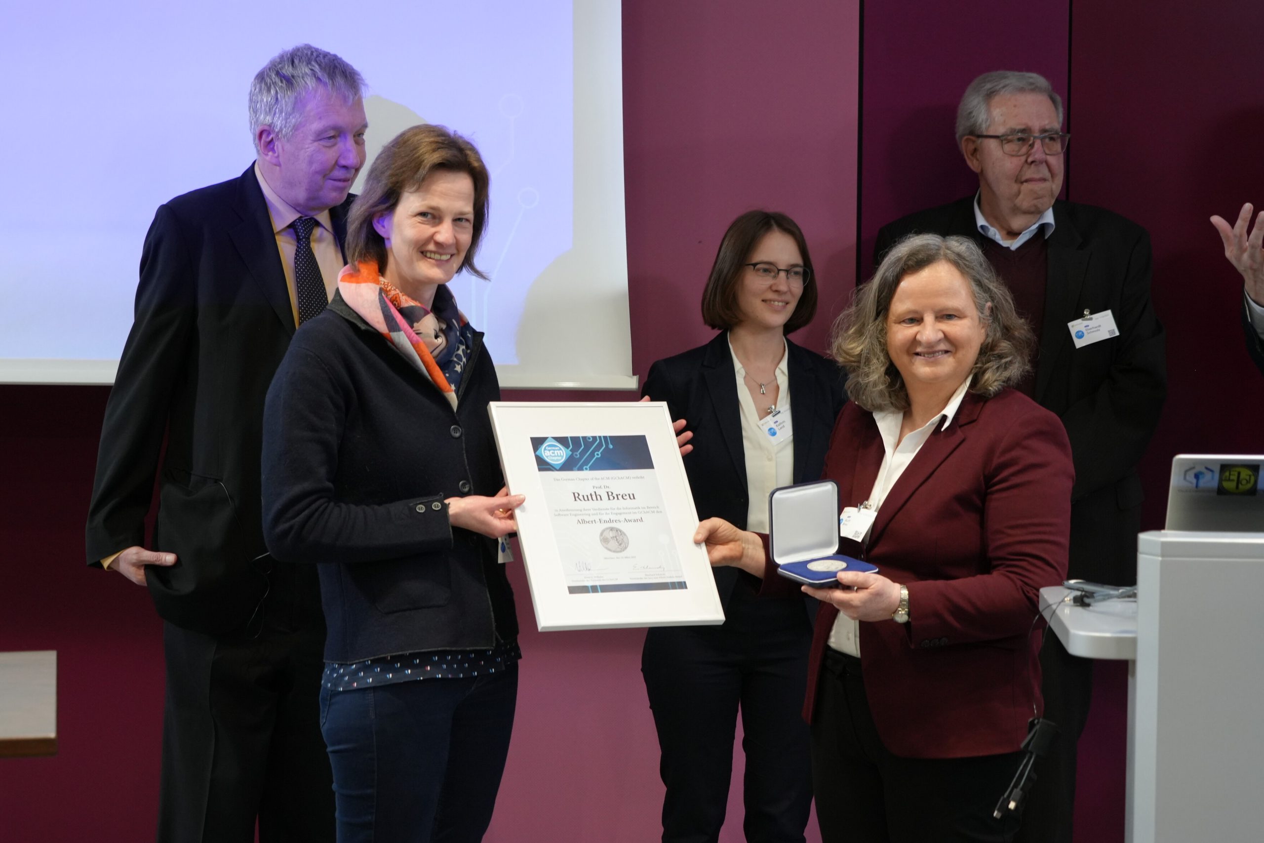 In der eigentlichen Preisverleihung wurden die handgefertigte Medaille aus Silber sowie eine Urkunde an unsere erste Preisträgerin übergeben: Prof. Dr. Ruth Breu, die aktuell in Innsbruck im Bereich modellbasiertes Requirements Engineering und IT Asset Management forscht und lehrt. Ein ausführlicher Bericht über den Preis wird folgen.
