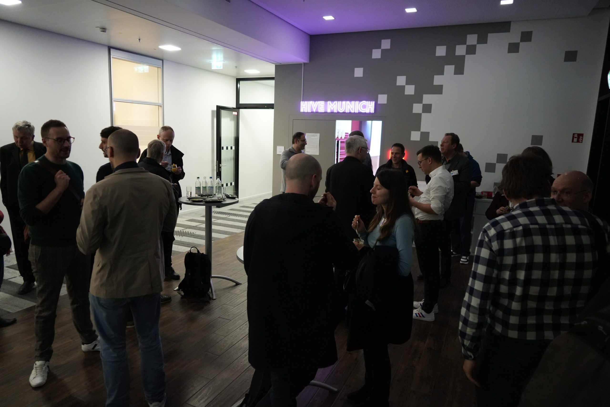Um 15 Uhr ging es los mit einem Besuch des Microsoft Technology Center. Sandra Volk und ihr Kollege gaben uns Einblicke in viele spannende aktuelle Anwendungsfälle wie beispielsweise die Verwendung von Augmented Reality (AR) mit dem Hololens headset, um Reparaturen an einem Bagger vorzunehmen. Bereits hier hatten die Mitglieder Gelegenheit, ausführlich Fragen zu stellen und so kam es zu diversen spannenden Diskussionen von Technikdetails bis hin zur Technikfolgenabschätzung.
